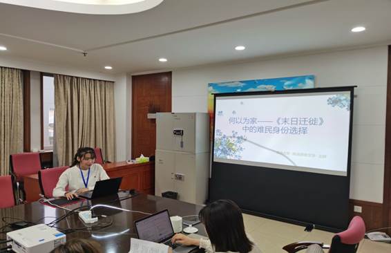 会上,王薇副教授作为第二小组主持人及发言人,以“世贸双塔、废墟与纪念地:美国 ‘9·11’小说的记忆场之争”为题,交流了最新研究成果。2019级研究生王薛同学就“论莫欣·哈米德的《末日迁徙》中的难民跨国身份选择”为主题,分析在全球化语境下难民在迁徙对自己跨国身份的选择,探究其影响和身份选择的背后因素,从而分析作者在文本中的跨国态度和跨国书写。