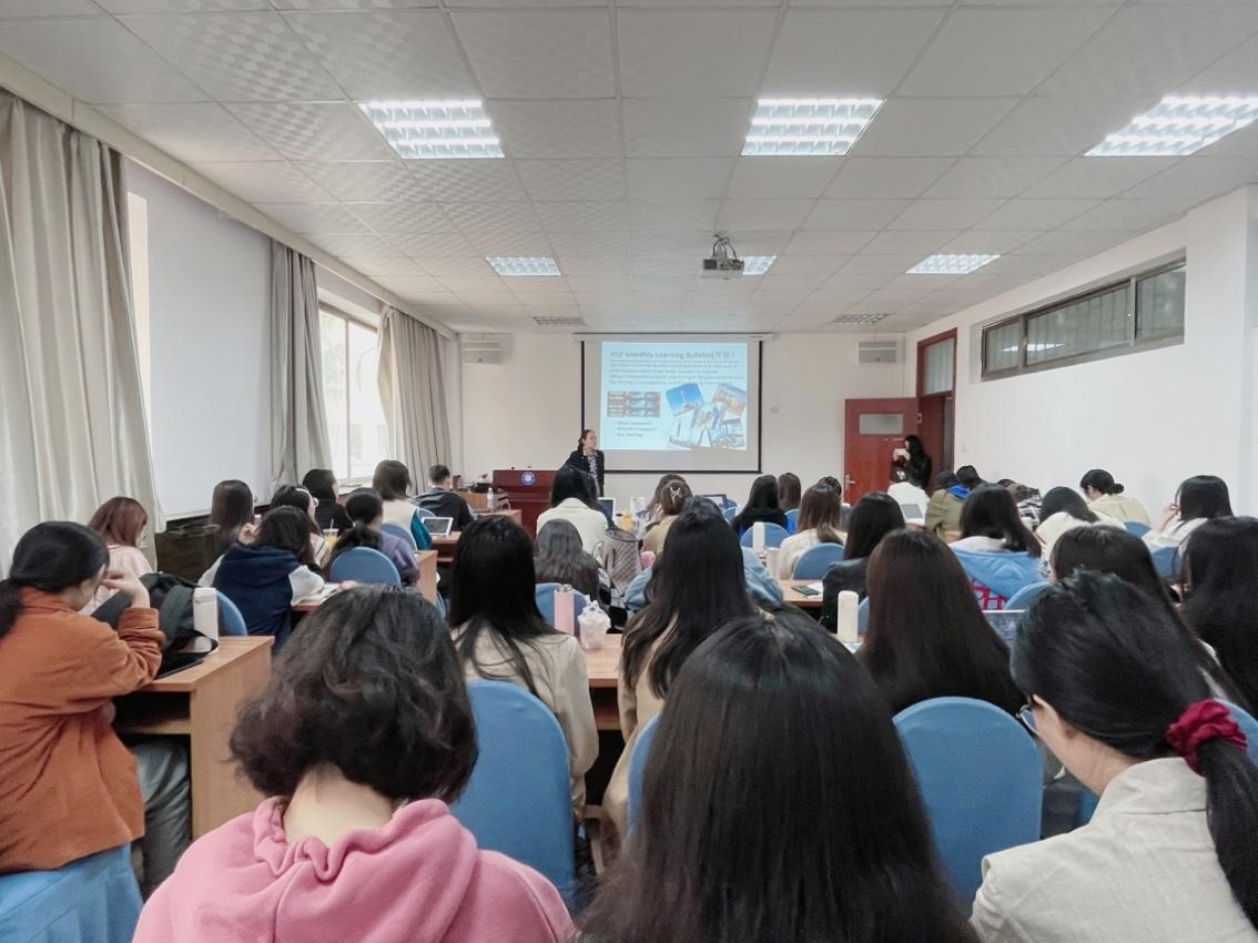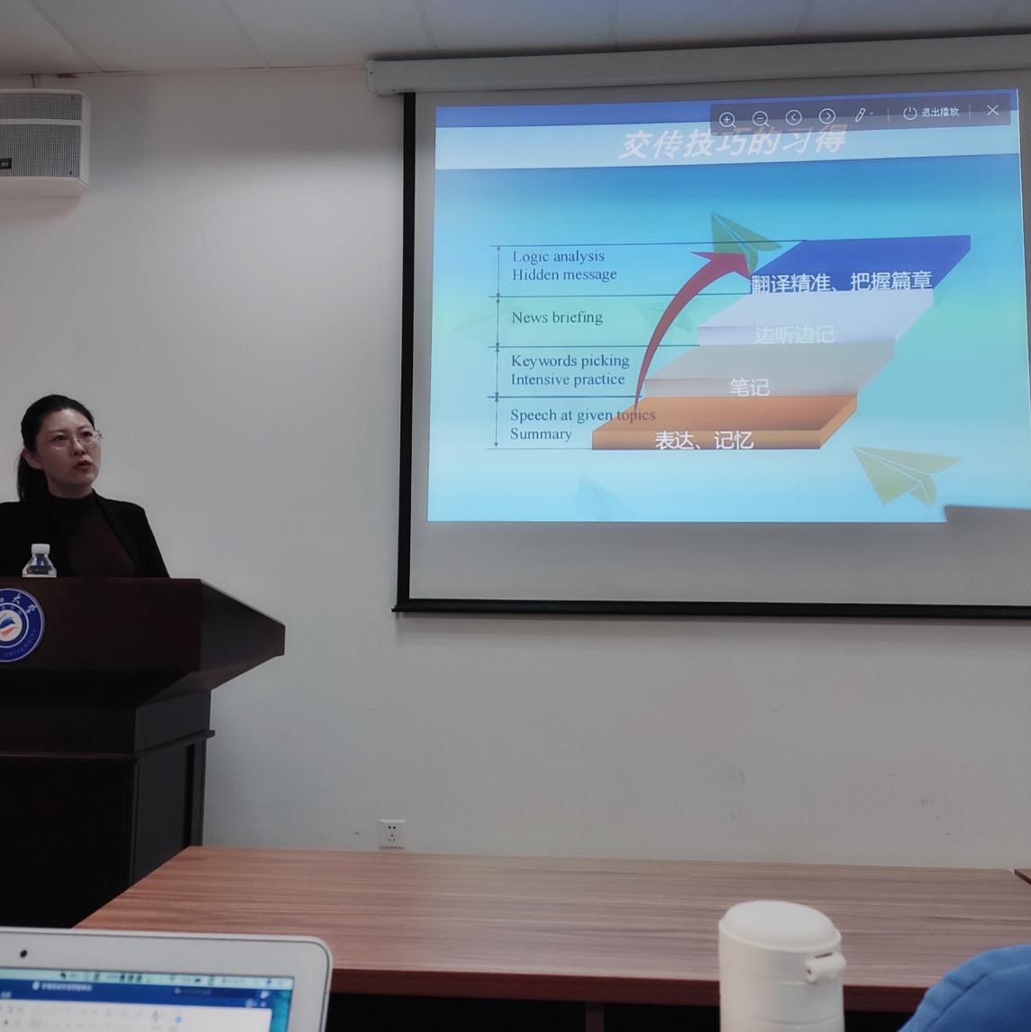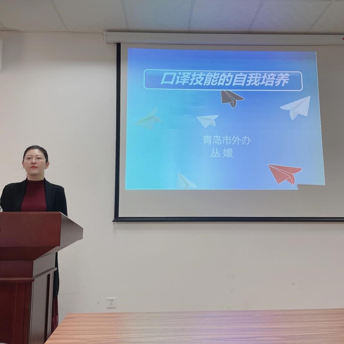 在博文楼312举办了研究生行业发展前沿讲座,青岛市政府外事办公室对外友协处处长丛媛为老师同学做了题为“口译技能的自我培养”讲座。丛媛为草莓视频