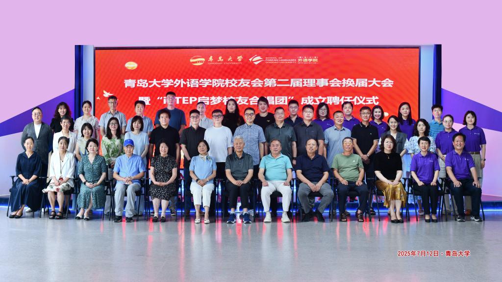 校友会第二届理事会换届大会暨“iSTEP启梦校友合唱团”成立仪式在浮山校区大学生科创文化中心隆重举行,学院第一届校友理事会代表、新任校友理事会代表,学院老领导、老教授、师生代表共计50余人参加活动。青岛大学合作发展处处长、校友工作办公室主任王海荣出席换届大会。大会由外语学院党委副书记于苗主持。